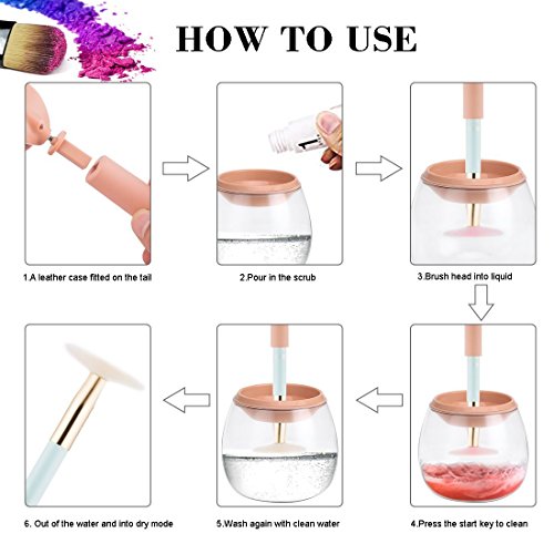 - Easy to Use:Only 3 Easy Steps to clean makeup brushes. 1. Attach the brush to the spinner; 2. Pour water and soap into the bowl; 3. Dip & Spin to Rinse, Spin to dry.