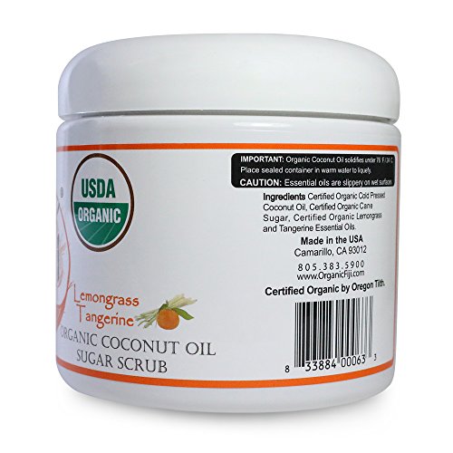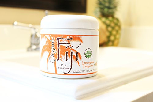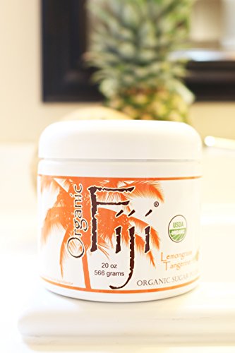 Organic Fiji Exfoliating Sugar Body Scrub, Hydrating & Moisturizing with Organic Coconut Oil, Lemongrass Tangerine, 20-Ounces