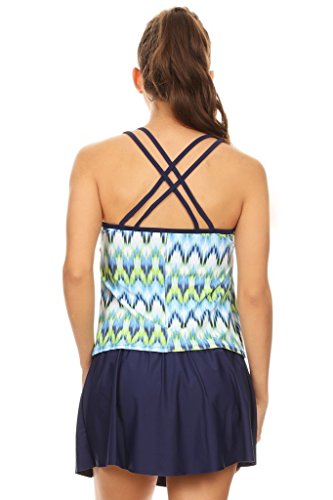 Title : Dippin' Daisy's Blue Batik Double Crossback Blouson Tankini w/ Skirted Bottom 16