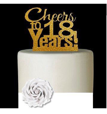 CakeSupplyShop Item#018CTA - 18th Birthday / Anniversary Cheers Super Gold Glitter Sparkle Elegant Cake Decoration Topper