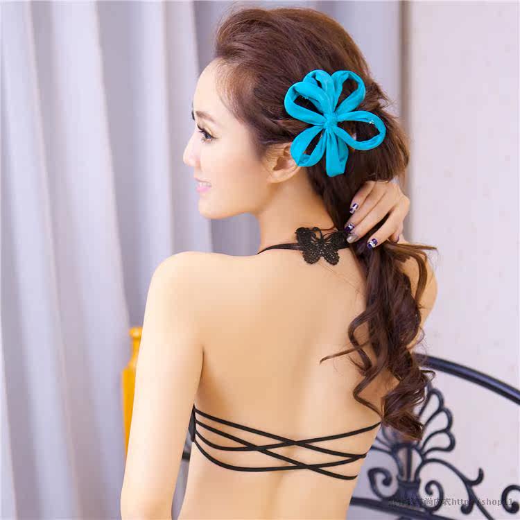 黑色文胸,日韩前扣挂脖美背光面聚拢文胸,无痕少女性感2109
