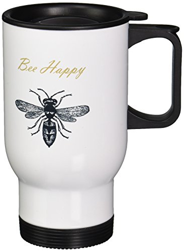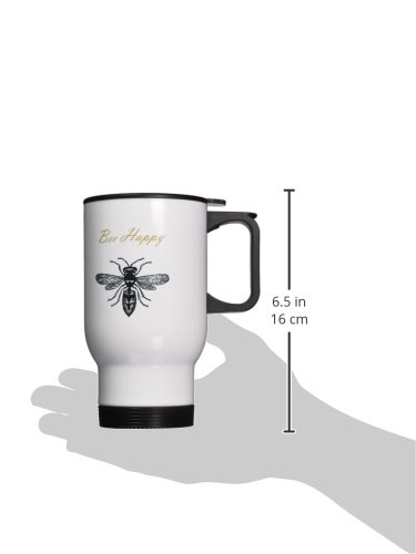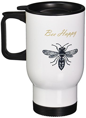 3dRose tm_164562_1 Bee Happy Inspirational Chic Art Stainless Steel Travel Mug, 14-Ounce