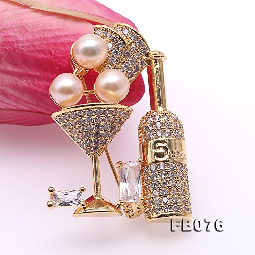 Description *Lovely pink pearl brooch with fashionable design.The exquisite brooch is fully inlaid with shiny zircons.