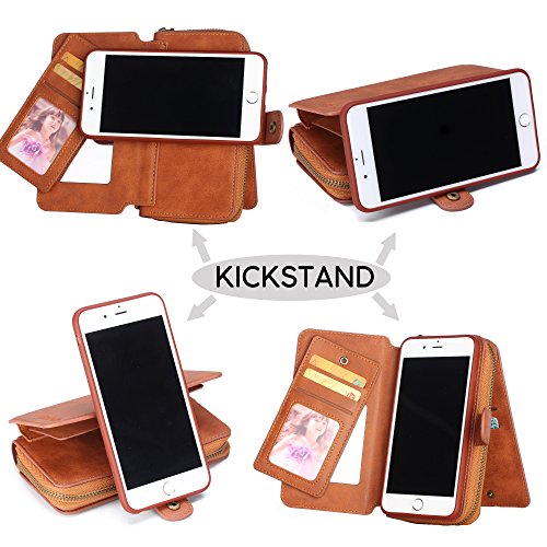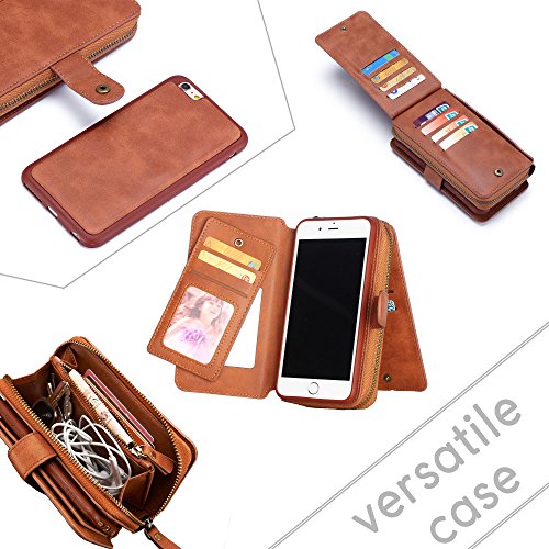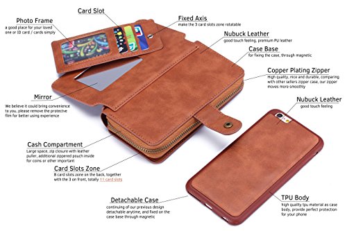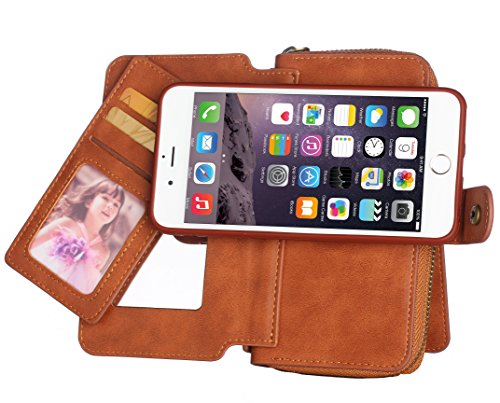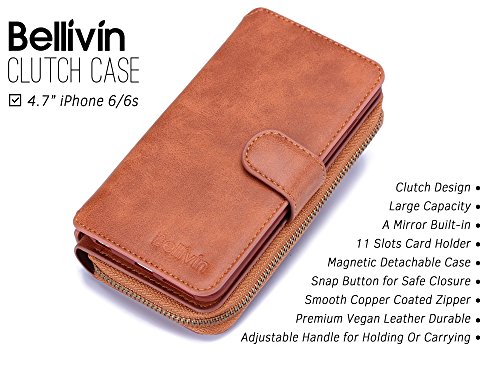 ★ LARGE CAPACITY clutch case with 11 slots card holder, kickstand & built-in MIRROR, designed for 4.7 inches iPhone 6 / 6S.