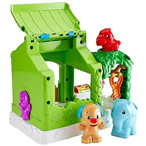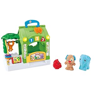 Take baby on a trip to the Laugh & Learn Smart Stages Activity Zoo for interactive learning fun! This zoo playset is loaded with busy activities for baby, including rollers, beads, switches and sliders that trigger more than 50 learning songs, tunes and phrases. It also features 3 levels of play that grow with baby! Lift the back roof for put-and-take play with the adorable Puppy, Elephant and Bird rattle figures that are sized just right for baby to grasp, hold & shake. Grab the handle to make this a traveling zoo for on-the-go learning fun! The Smart Stages Activity Zoo includes Smart Stages technology, an exciting new way to change learning content as baby grows. Every baby develops at his or her own pace, and Smart Stages technology gives you the ability to select the stage that's best for your child! There are a variety of developmentally appropriate songs, phrases and sounds within three levels of play - just slide the switch for level changes. Smart Stages Technology Level 1 - Explore - 9M+ First words and sounds spark baby's curiosity Level 2 - Encourage - 12M+ Prompt baby through questions and simple directions Level 3 - Pretend - 18M+ Imaginative fun and early role play.