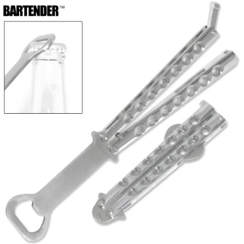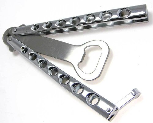 The Original BOTTLEFLY KNIFE Butterfly Knife Bottle Opener (Chrome)
