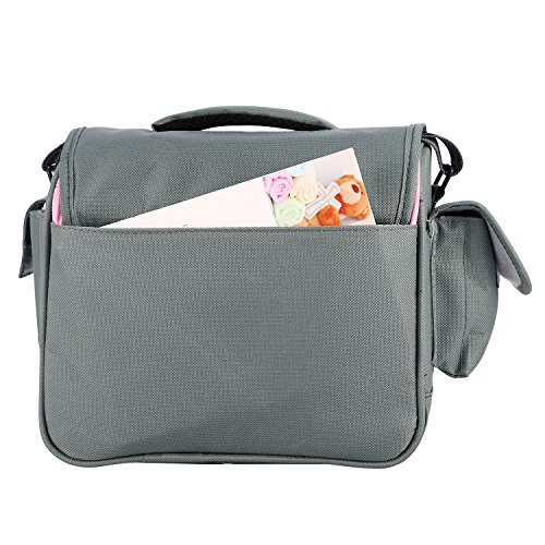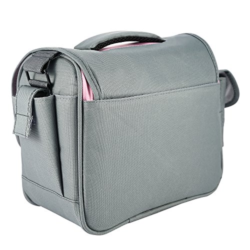 -. Feature : Waterproof material to protect your camera from raining / Anti-pressure: there is a large shoulder pad, it can reduce pressure, protect your shoulder / Detached dividers: inner bag is very flexible, detached dividers can move, you can change it depend on what you want / Big capacity: DSLR camera/Mini Camcorder, lens, charger, memory card, and other accessories. / Material: nylon, shockproof and anti-resistant to keep your belongings safe