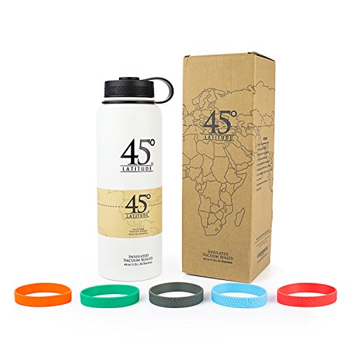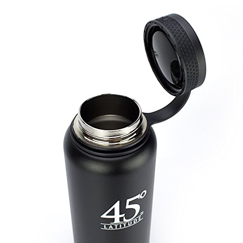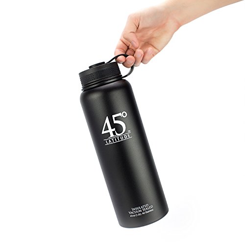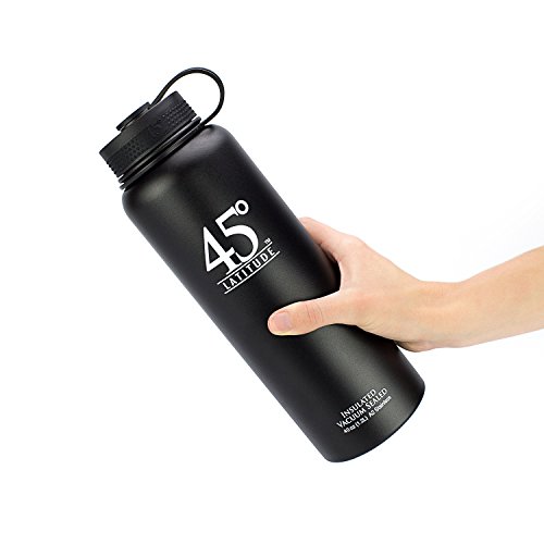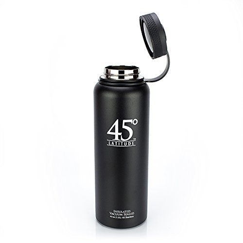 -. Brand : 45 Degree Latitude -. Feature : PREMIUM QUALITY STAINLESS STEEL - 100% BPA free odorless and preserves the flavor of your drink that you will enjoy anytime and anywhere / WIDE MOUTH OPENING - fits ice perfectly into the bottle, easy filling, mess-free pouring and effortless cleaning / DOUBLE WALLED INSULATED - keeps your favorite drink hot up to 12 hours and cold up to 24 hours / STYLISH DESIGN & LEAK-PROOF LID - powder-coated matte finish exterior for easy grip and ensures no sweating or condensation / WE GOT YOUR BACK - WSG is committed to exceptional customer service. Contact us directly if you are not satisfied with your purchase -. IsAutographed : 0 -. IsMemorabilia : 0 -. Label : Whole Solutions Group -. Manufacturer : Whole Solutions Group -. ProductGroup : Sports -. ProductTypeName : OUTDOOR_RECREATION_PRODUCT -. Publisher : Whole Solutions Group -. Studio : Whole Solutions Group -. Title : 45 Degree Latitude Stainless Steel 40 oz Water Bottle Best for Hot or Cold Drinks Premium Grade Ideal for Sports & Outdoor Use