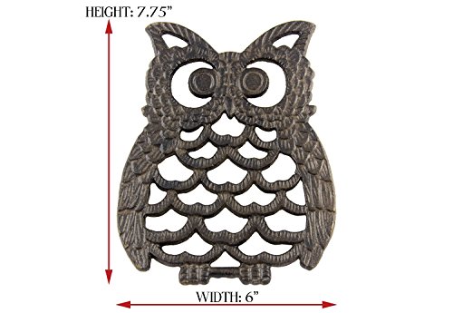 Durable & Sturdy Owl Trivet - Protect your kitchen counter or dining table from hot pots, pans and dishes with this cast iron trivet. Attached rubber feet will keep your table or counter safe from scratches.