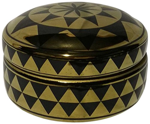Benzara Comely Ceramic Covered Triangle Design Jar Decorative, Black/Gold