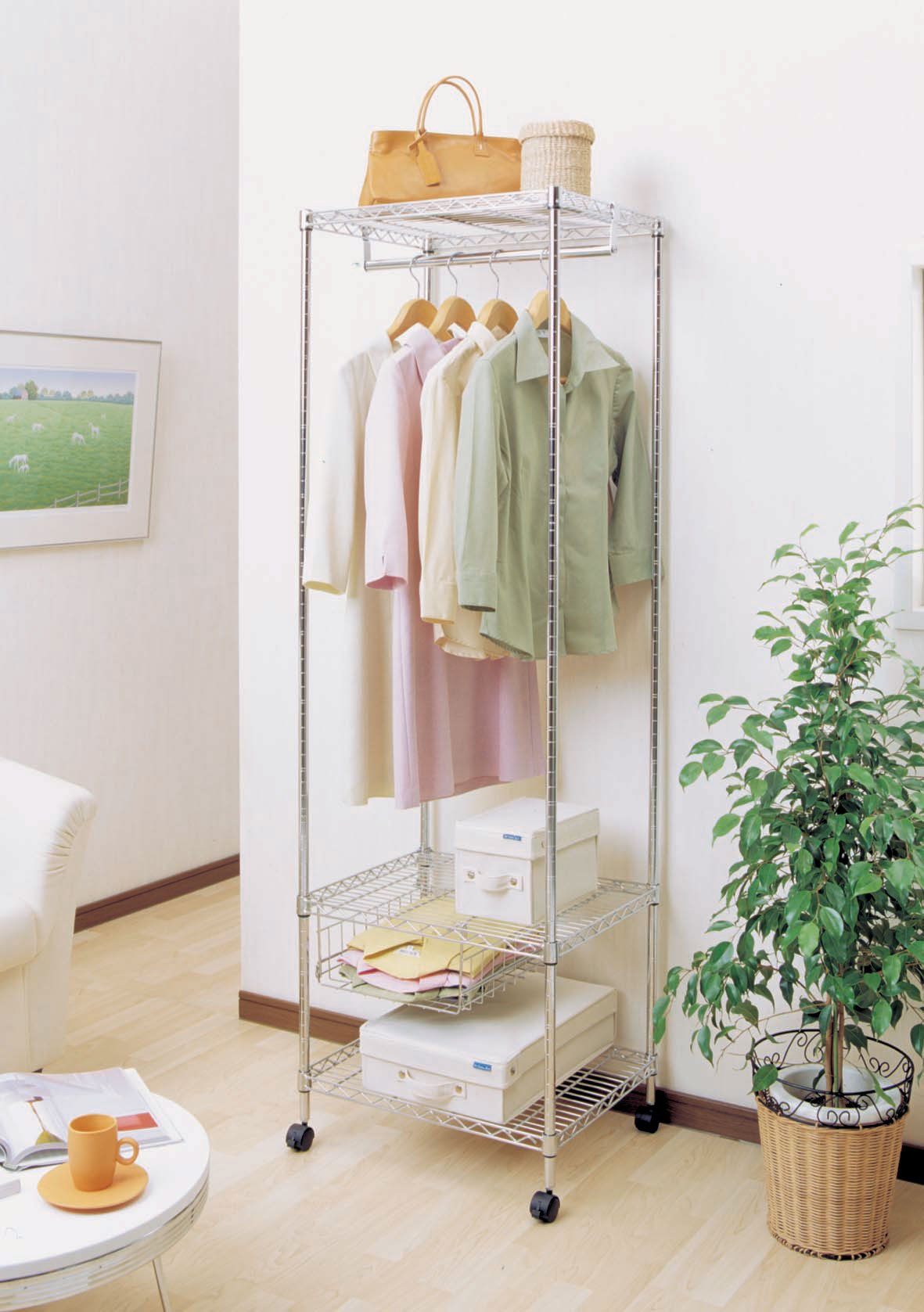 Since the shelf board is attached to the lower row, it is convenient for storage of back etc.