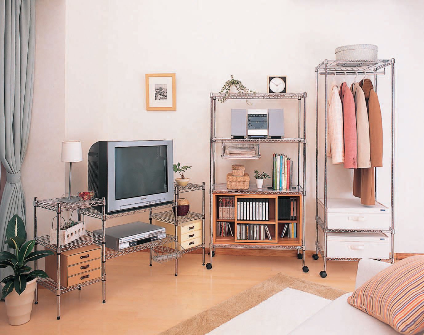 ● Storage standard: 12 jackets on hanger pipe ● Suitable products: Metal mini wardrobe cover MTO-55CV ● Pole diameter (approx.): 19 mm