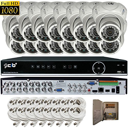 CIB Security H80P16K2T03W-16KIT-W 16CH 1080P Video Security DVR, 2TB HDD & 16x2.1-MP 1920TVL Night Vision Camera, White