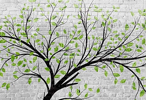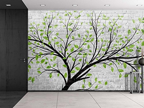 Wall26 - Tree with Green Leaves Going Along a Brickwall - Wall Mural, Removable Sticker, Home Decor - 66x96 inches
