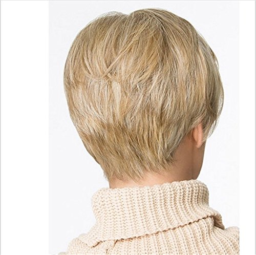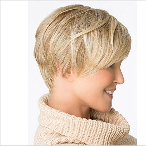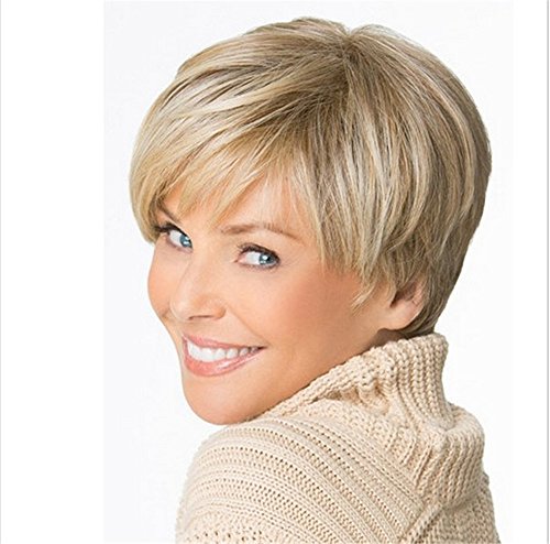 JYWIGS 12'' Blonde Short Wig for Women Multicolor Synthetic Fiber Side Swept Full Bangs Wig Cap Hairnets Gift