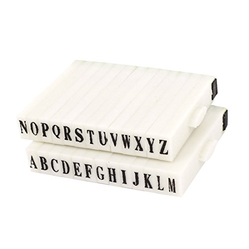 -. Feature : Product Name : 26-Letters Stamps Design : Detachable 26 Letters / Rubber Head Size : 5.5 x 4mm/ 0.21" x 0.16"(L*W)Material : Plastic, Rubber / Color : White, Black Each Block Size : 40 x 8 x 3.5mm / 1.6" x 0.3" x 0.14"(L*W*T) / Net Weight : 28g / Package Content : 1 set x 26-Letters Stamps