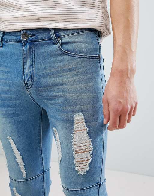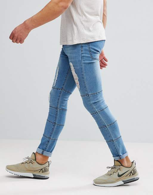 boohooMAN Skinny Jeans With Panels And Rips In Light Wash