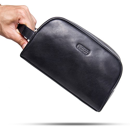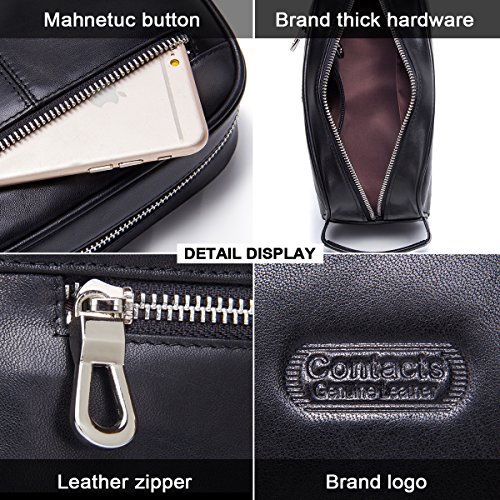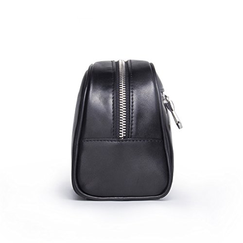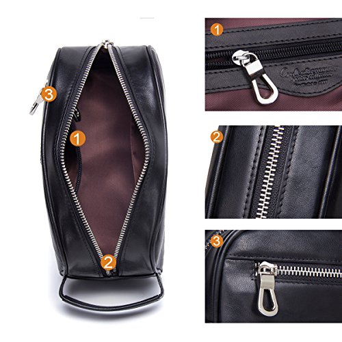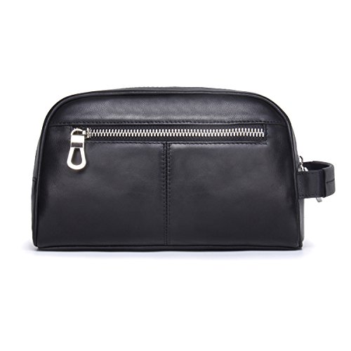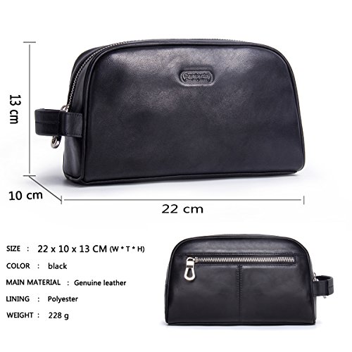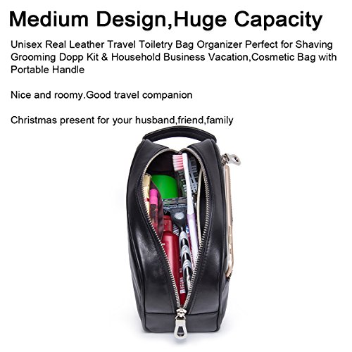 Contacts Genuine Leather Zipper Toiletry Bag Dopp Kit Small Travel Bag Black