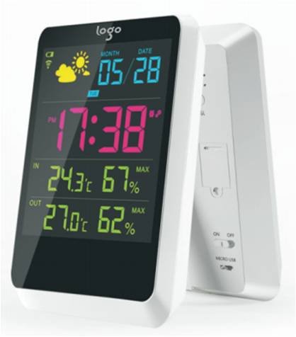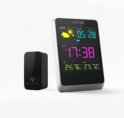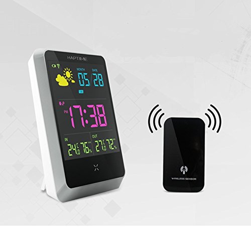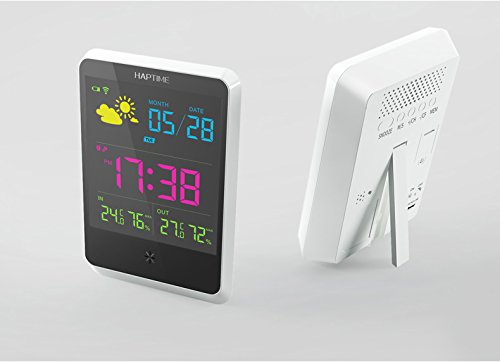 -. Brand : RACPLUS -. Color : White -. EAN : 4500789166752 -. Feature : Collecting the indoor and outdoor temperature and humidity change trends, forecasting four kinds of weather conditions: sunny with cloudy/cloudy/rain. / Alarm and snooze function / Adopting wireless transmission technology, it can receive temperature & humidity data(30 mater without barrier). / Minimum and maximum memory for indoor and remote temperature and humidity. / Low battery indicators,colorful led background -. Label : RACPLUS -. Manufacturer : RACPLUS -. MPN : RACPLUS-THEM-03 -. PartNumber : RACPLUS-THEM-03 -. ProductGroup : Lawn & Patio -. ProductTypeName : OUTDOOR_LIVING -. Publisher : RACPLUS -. Studio : RACPLUS -. Title : RACPLUS Wireless Weather Station Digital Alarm O'clock