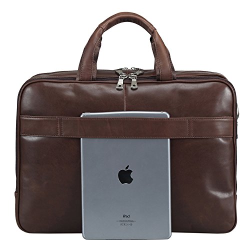 -. Feature : Made of 100% Geniune Cowhide Leather imported from Italy, With Top Hardware / Dimension:17.5"/44.5cm * Width 5.5"/14cm * Height 12"/31cm, Handle approx. 3 inches., Net Weight:1.7KG / Laptop Padding inside fits 15 inch laptop for business trip, Main compartment fit up to 17.3''Laptop, Front and interior pockets organization for all your business needs like PAD,Books,Glasses,Phone and wallet and so on / Shoulder strap is adjustable, The backside of the bag has a belt that can easy carry along with a suitcase, Great for business trip / Large and Light£¡Take it as laptop Briefcase, Shoulder bag or Messenger bag
