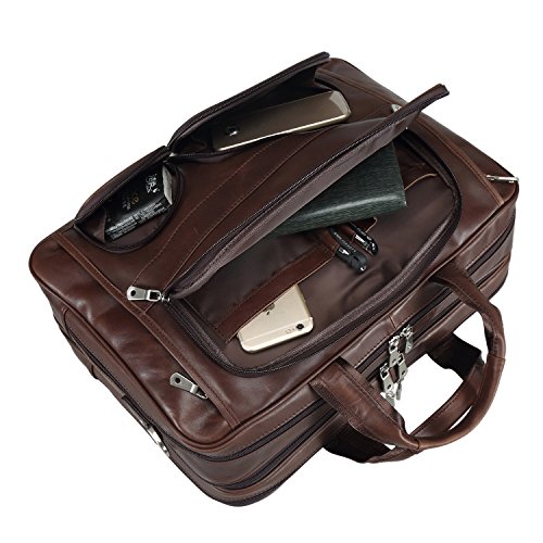 -. Title : Texbo Men's Genuine Leather Business Trip Briefcase Large Bag Fit 17" Laptop