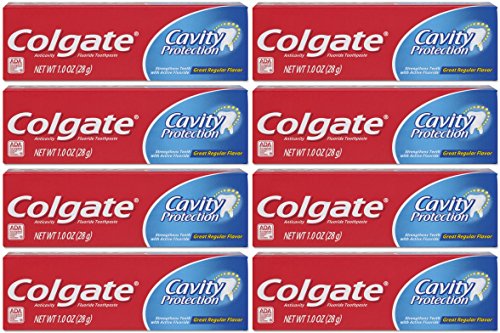 -. Title : Colgate Cavity Protection Fluoride Toothpaste, Great Regular Flavor, Travel Size TSA Aproved, 1 Ounce (Pack of 8)