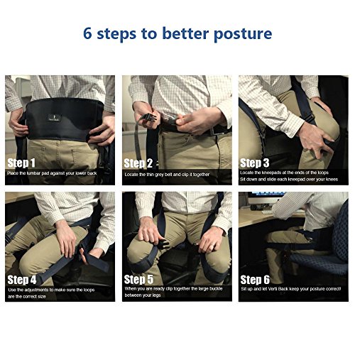 -. Feature : No more slouching! Provides lower back support and corrects sitting posture in a gentle and effective way. / Favored by physiotherapists, chiropractors, and health evangelists. Verti Back is being supplied regularly to physiotherapy centers and chriporactor clinics who recommend it highly to their patients. / Back brace built with high-quality and comfortable materials and padding. Fully adjustable straps and buckles make Verti Back customizable for your shape and size. So, you can use it on any chair or bench or even the floor. / What makes Verti Back superior to competing products is that it has a thicker back padding which provides more comfort. This means it won't fold into a tight ball, but it is still readily portable to the office, on fishing trips, the ball-game, yoga class, or just to the patio where you do your meditation. / Simple to use; easy to get used to. Comes with an instruction manual that illustrates how to strap on the product for the first time. Thereafter it is easy to unbuckle and rebuckle / slip the straps on and off your knees.