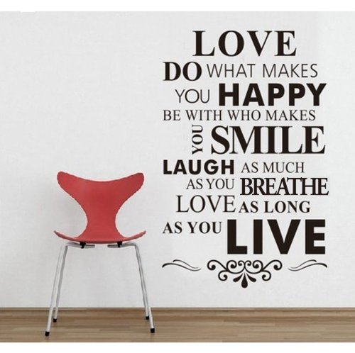 DIY Happy Live Laugh Love Smile Inspirational Quote Wall Paper Art Vinyl Decal Sticker