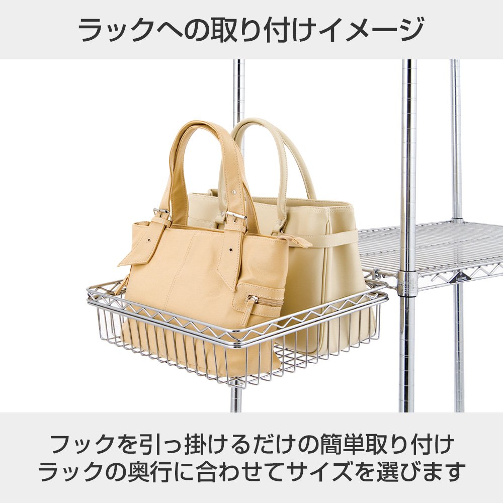 / ■ Specification ■ · Size (approx.): Width 40 × depth 34 × height 10 cm (excluding hook portion) · Corresponding pole diameter: 25 mm · Adaptive shelf size: Depth 46 cm · Material: Steel (chrome plated)
