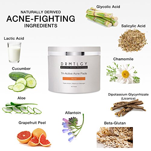 DRMTLGY - Dermatologist Recommended Acne Pads. 3-in-1 Acne Treatment With Three Active Ingredients: Salicylic Acid, Glycolic Acid, Lactic Acid....