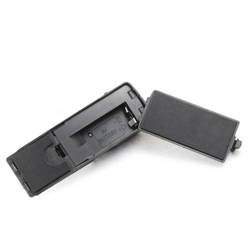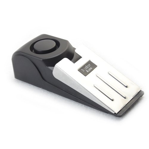 -. Feature : This Door stop alarm is Great for travel, 118 dB alarm with on-off switch. / Adjustable sensitivity switch prevents tampering / Powered by one 9-volt battery(not included)