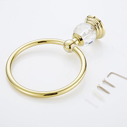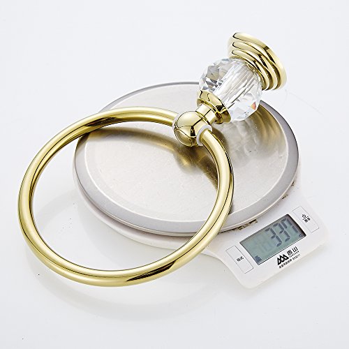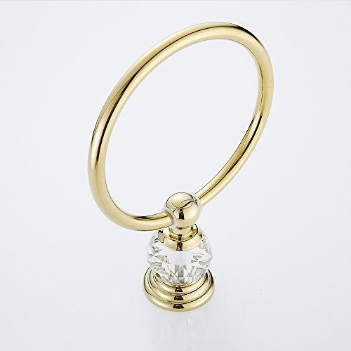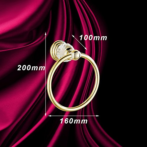 AUSWIND European Antique Luxury Gold Polished Stainless Steel Crystal Towel Ring Wall Mounted Bathroom Accessory XH