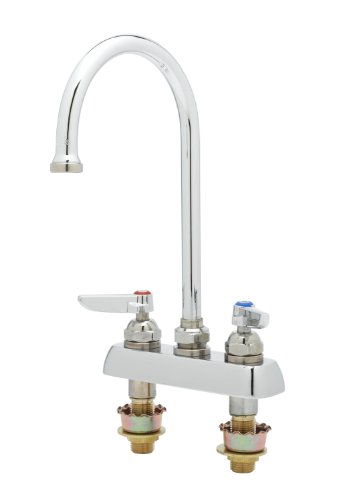 T&S Brass B-1141-XS Deck Mount Workboard Faucet with 4-Inch Centers, Swivel Gooseneck, Lever Handles and 2-Inch Shanks