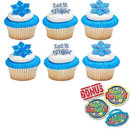 Let It Snow Cupcake Toppers and Bonus Birthday Ring - 25 pieces