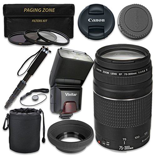 Paging Zone Canon EF 75300mm f / 45.6III렌즈와 Vivitar TTL플래쉬+ 3개 들이 필터 키트+1각