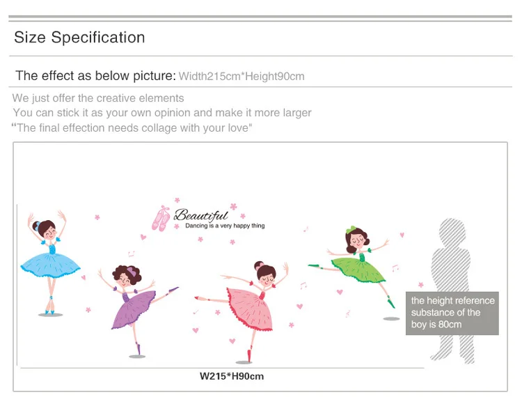 Content:Creative Ballerina Girl Wall Stickers For Kids Room