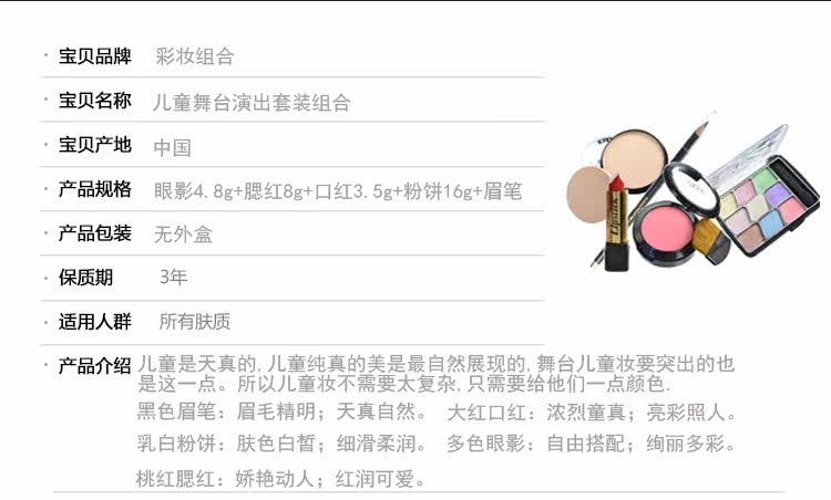 羞羞再次申明这款套装是为儿童舞台演出简单化妆设计的