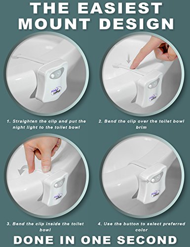 - FUNCTIONALITY AND MODERN DÉCOR The Magic Toilet Bowl Night Light is not only incredibly helpful for those midnight bathroom breaks, but offers a full 8 LED colors to chose from. With that many options, you’re sure to find the right color to match your bathroom