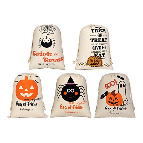 - Pack of 5 Halloween bags,Trick or Treat candy bags,premium cotton and encryption canvas,Safe to contact with skin or food