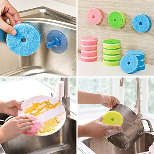 DuranRyan Kitchen Sponges with Wall Suction Holders , Heavy Duty Absorbent Cleaning Sponge for Kitchen Dishwashing and Home