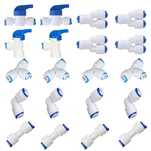 Wellyu 1/4 " Tube Quick Connect for RO Water Filter Fitting Set Of 20 (4Ball valve+4I+4Y+4T+4L)