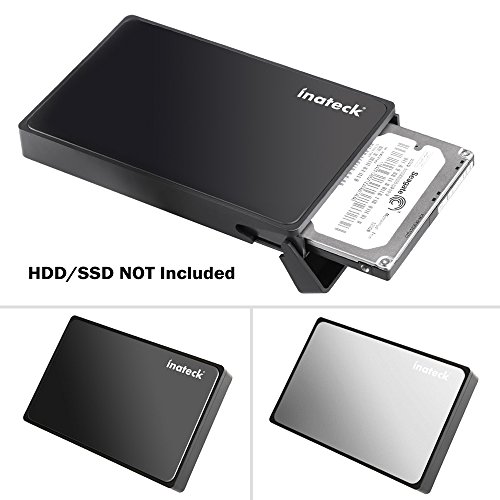 Inateck 2.5 Inch USB 3.0 Hard Drive Disk HDD External Enclosure/ Case With USB 3.0 Cable for 9.5mm 7mm 2.5-Inch SATA-I, SATA-II, SATA-III, SATA HDD and SSD, Support UASP, Tool-Free - Black [Optimized For SSD]