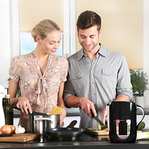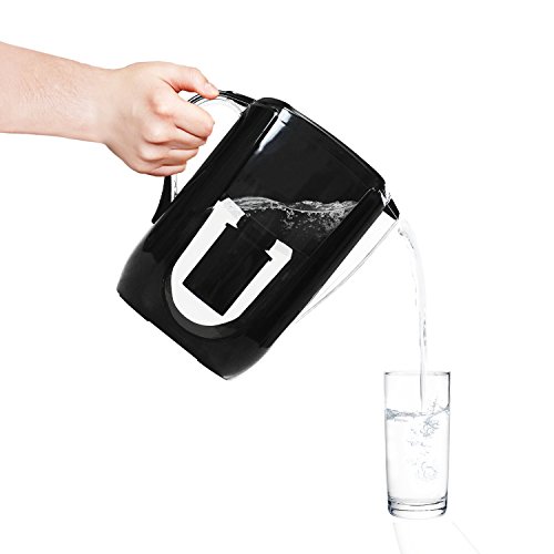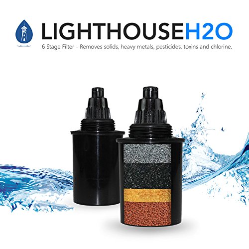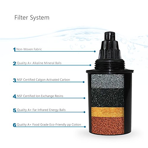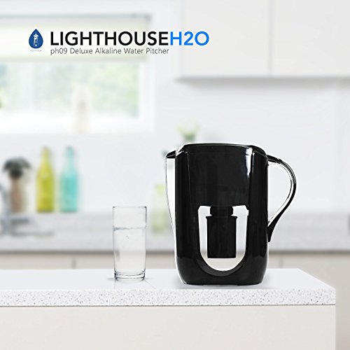 Your Lighthouse H20 Alkaline Water Pitcher goes the extra mile and actually restructures your tap water. From increased alkaline PH (8.5 to 10 range) to transforming water clusters into hexagon shapes, now your water absorbs faster and increases energy [see images]. Those who recognize the health benefits of Alkaline water will enjoy balanced calcium / magnesium and lower ORP (-200 to -400) that reduces oxidation for a healthier body. The powerful 6-stage cartridge also removes impurities and then improves water with 20 trace elements for fresh tasting water. As far as design is concerned, this cartridge screws in and eliminates the unfiltered leakage that happens with most drop in filter designs. And there is a Countdown Indicator that tells you when to change the filter - no more guesswork. And finally, this high capacity pitcher is designed to last, from BPA free materials, to rugged lid and handle designs that won't break off like on cheaper pitchers.Feature