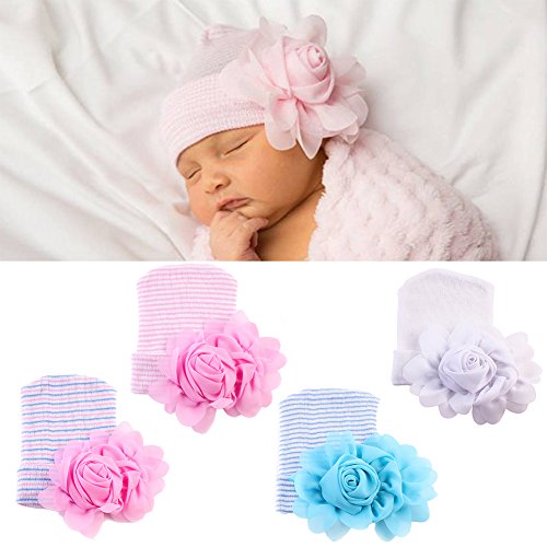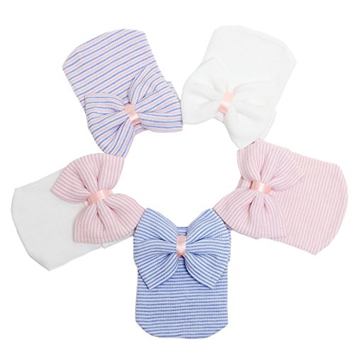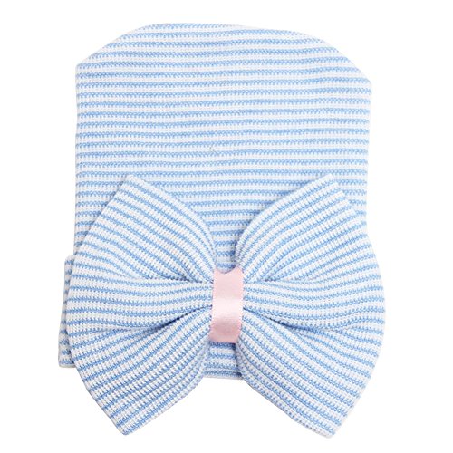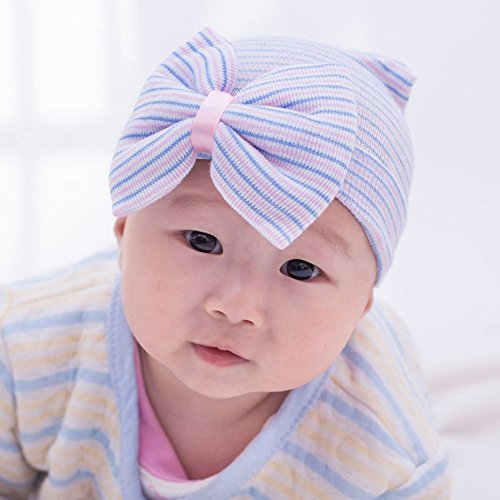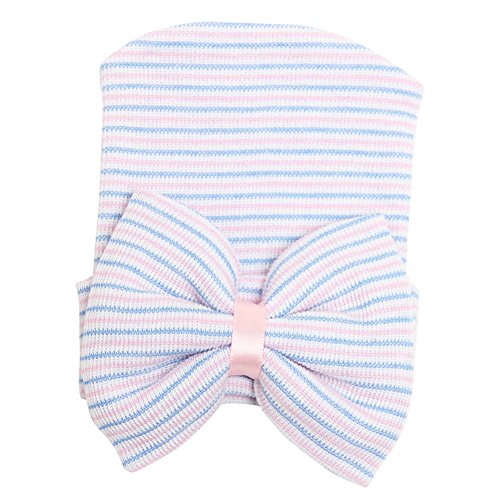 | SQ Bowknot Stripe Newborn Baby Girls Infant Toddler Hospital Beanie Hat Cap |