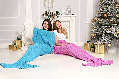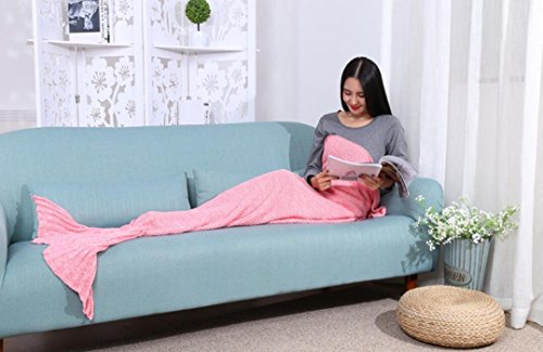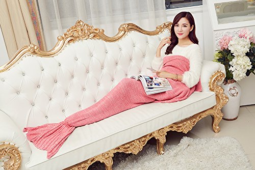 e-joy Mermaid Crochet Knitting Blanket all Season Bag Best Birthday Christmas Gift Handmade Living Room Sleeping Blanket for Kids and Adult, Pink for Adult 71x36 inch