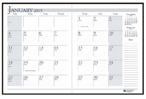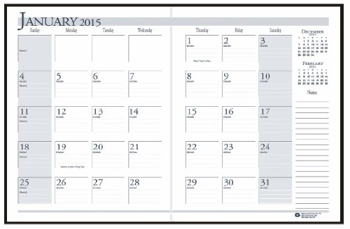 House of Doolittle Economy Monthly Planner 14 Months, December 2014 to January 2016, Black Stitched Leatherette Cover Recycled (HOD26002)