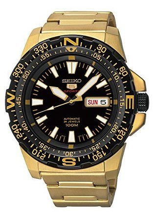 세이코import 세이코 Seiko 5 SRP548 Automatic Gold Tone Black Dial Mens Watch 남성 맨즈 손목시계 【병행수입품】