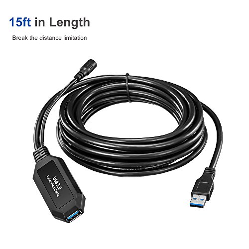 Universal compatibility active USB3.0 extension cable extends the connection between a computer and USB 3.0/ 2.0 peripherals such as printer, scanner, keyboard, mouse, USB hub, card reader, flash drive, web camera, scanner over distance of up to 15ft