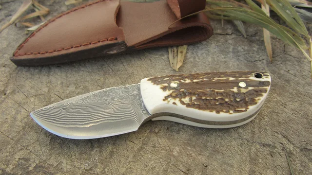 | [해외] 다마스커스 강철 블레이드 야외 캠핑 나이프 휴대용 생존 사냥 칼 가죽 칼집 나이프 고정 EDC 칼 |
