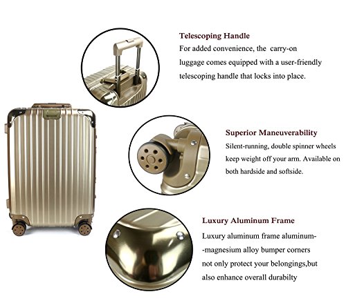 -. Brand : TOGEDI -. Department : mens -. Feature : Combined with luxury aluminum frame and extra durable PC+ABS shell,protective hard shell with scratch-resistant finish for added strength / 4 Multi-directional silent spinner wheels assuring multi-directional rolling and optional stability with zero weight on your hand / Sturdy ergonomic telescoping handle / Side mounted 2 TSA code lock with resettable code for secure travel / Fully lined interior with multi-use organizational pockets make it easy for packing clothes -. PackageQuantity : 1 -. ProductGroup : Apparel -. ProductTypeName : LAGE -. Title : TOGEDI Aluminum Frame Spinner Lage TSA Approved Suitcase